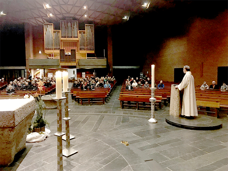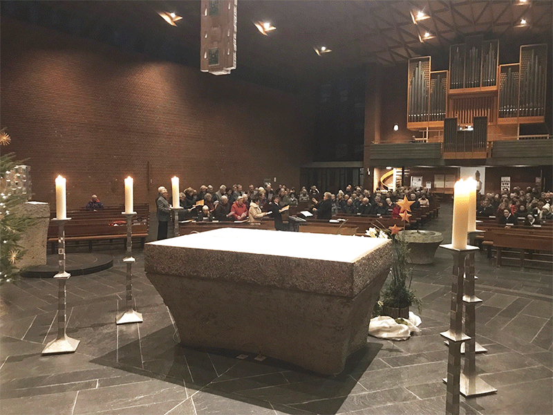 Am 1. Januar 2019 fand in bewährter ökumenischer Tradition der große Ökumenische Neujahrsgottesdienst statt, diesmal - der Jahreslosung folgend - zum Thema Frieden. Der Gottesdienst wurde von evangelischer Seite durch Ilse Jehle mit vorbereitet, die ihn auch mit einer Lesung eröffnete. Viele Gläubige unterschiedlicher Konfession aus dem Klettgau waren auch in diesem Jahr wieder der Einladung der römisch-katholischen, der evangelischen und der alt-katholischen Gemeinde gefolgt. Die liturgische Leitung hatte Pfarrer Thomas Mitzkus, Pfarrerin Andrea Kaiser legte die Jahreslosung aus. Musikalisch gestaltete den Gottesdienst der Gemischte Chor Erzingen unter der Leitung von Karin Brogle mit. An der Orgel war zu hören und beeindruckte durch sein virtuoses Spiel Erzingens Kantor Andreas Konrad.